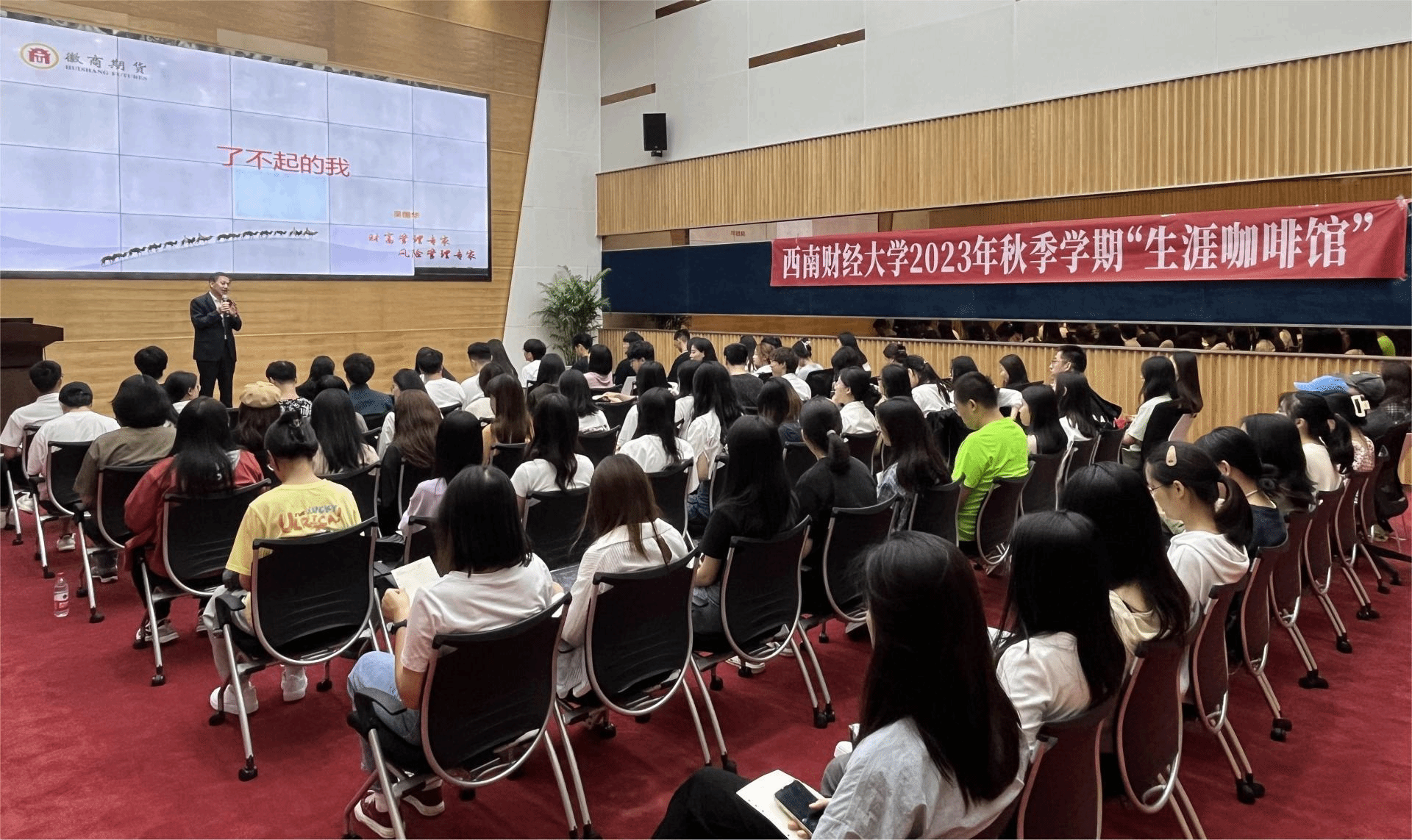 近日,由学校学生职业规划与就业指导中心和金融学院、中国金融研究院联合举办的“2023年秋季学期 ‘生涯咖啡馆’”在光华校区成功举办。安徽省徽商集团公司党委委员、副总经理吴国华及师生代表五十余人参加本次活动。活动由沈婷芳同学主持。
