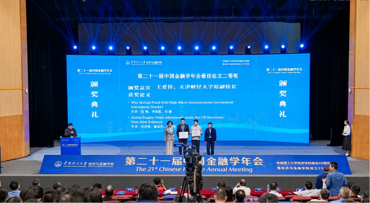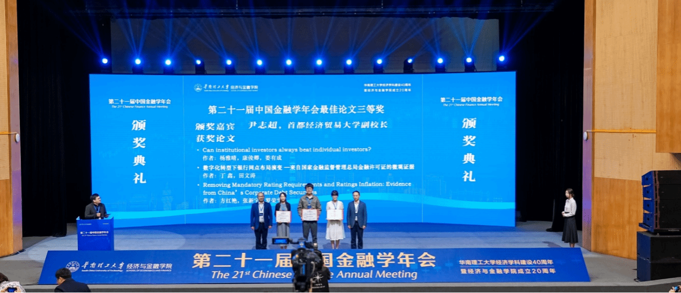 金融学院教师张翔,数字经济与交叉科学创新研究院李雨露与斯德哥尔摩大学刘璐合作论文《Why Mutual Fund Hold High Macro Announcement Incremental Information Stocks?》获得年会优秀论文二等奖。金融学院和中国金融研究院教师罗荣华和上海对外经贸大学方红艳、张新宇合作论文《Removing Mandatory Rating Requirements and Ratings Inflation:Evidence from China’s Corporate Debt Securities》获得年会优秀论文三等奖。中国金融研究院教师胡颖毅和博士生白逸飏合作论文《“Backward- and Forward-Looking”Decision-Making under Prospect Theoryand Stock Returns》获WRDS(沃顿)数据最佳论文。