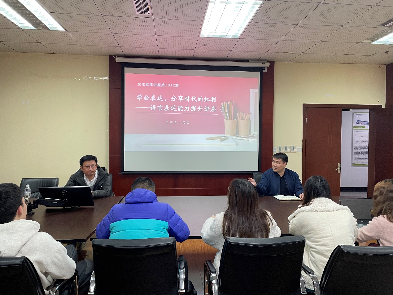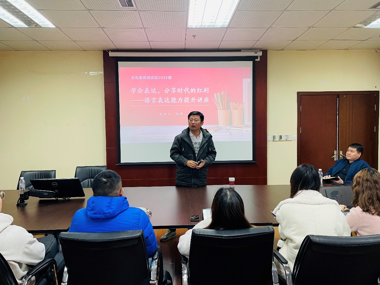 为进一步提升中心师生人文素养,陶冶文化情操,弘扬先进文化,11月30日,yl7703永利集团人文学院副院长、艺术教育中心主任沈思副教授受邀在格致楼618开展主题为“学会表达,分享时代的红利—语言表达能力提升”的文化素质讲座。中心师生70余人参会。党总支副书记陈卓主持讲座。