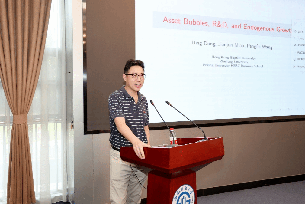 浙江大学经济学院苗建军教授作题为“Asset Bubbles, R&D, and Endogenous Growth”的主旨报告。聚焦全球科技热潮与高估值背景下理性资产泡沫能否促进创新与长期经济增长的前沿问题,他构建结合资产泡沫与内生研发的长期增长模型,揭示股权泡沫可缓解研发融资约束,推动要素向创新集中,提升研发全要素生产率与过渡期经济增速,并通过宏观微观数据实证验证资产泡沫与企业研发支出的正相关关系,突破性指出一定条件下资产泡沫或为推动技术进步与结构优化的重要力量。