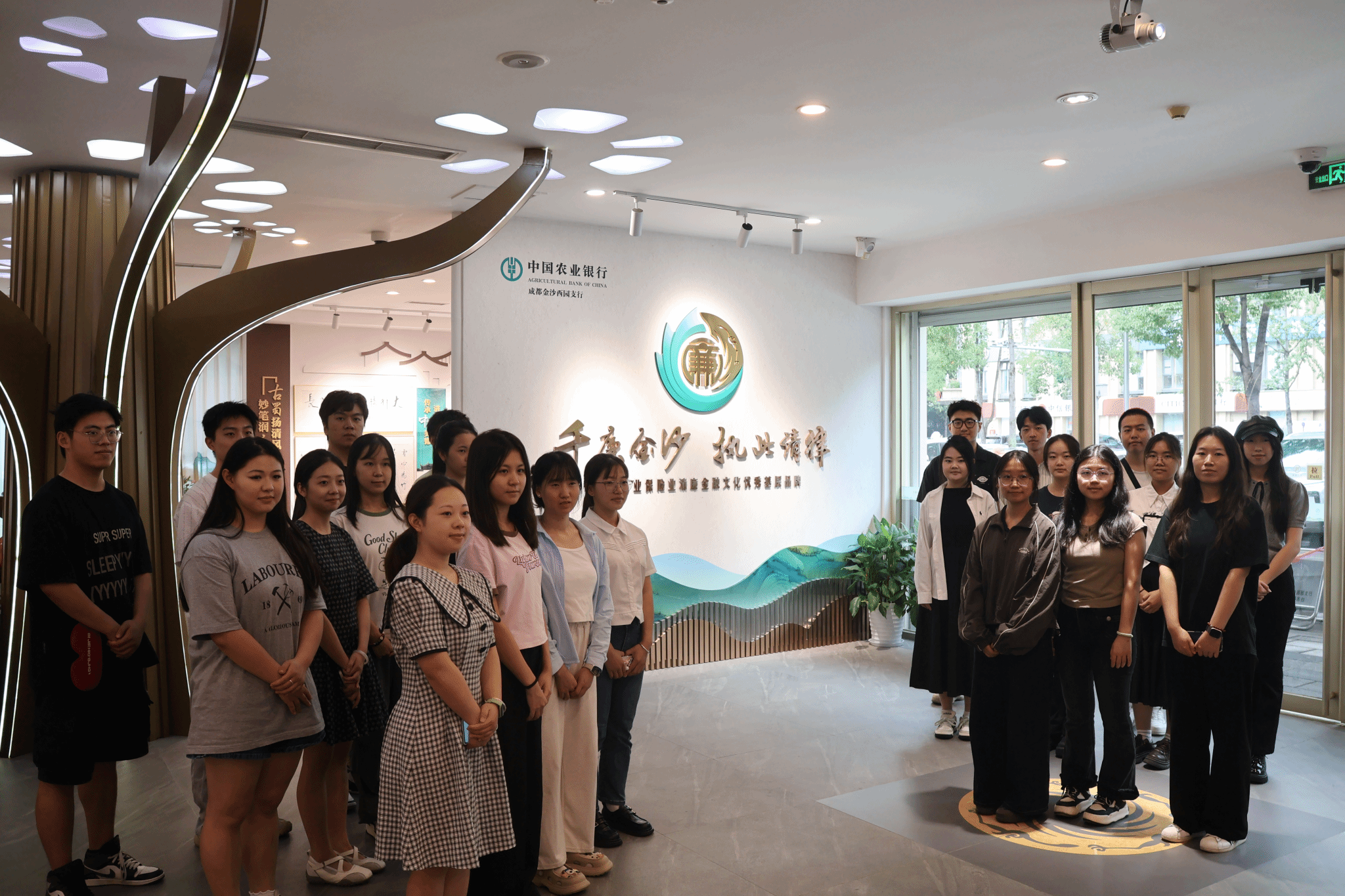 学院(研究院)还组织学生赴中国农业银行成都金沙西园支行,开展“千廉金沙 执此清律”参观学习活动。通过实地走访与专家讲座,同学们深入了解银行合规与清廉建设实践,深刻认识到廉洁文化对金融行业及个人成长的重要意义。