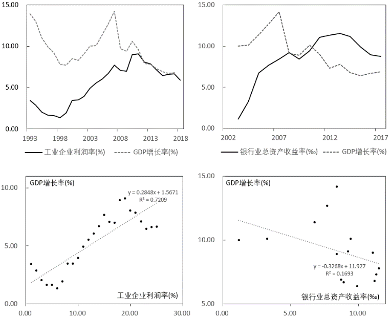 图2. 中国工业企业利润、金融业利润与经济增长