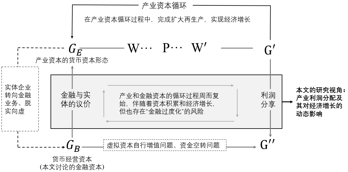 相比西方金融理论,马克思的金融思想更加重视对利润来源的分析。虽然现代金融产品和服务种类繁多,但究其利润的最终来源,依然是实体行业。但事实上,随着金融行业的发展,金融机构从企业的服务者,变成了能够制约产业发展的强势市场主体。利润的分享问题是金融与实体的天然联系,金融的高利润意味着产业的高融资成本,其结果可能是损害经济增长。马克思主义政治经济学意识到了金融业利润来源的重要性,提出了金融业高利润可能损害经济发展的观点,但很少给出基于经济增长的细化理论分析;而另一方面,在西方经济学领域,对于“金融过度化”假说(‘too much’ finance hypothesis)的探讨颇多,但很少涉及金融业利润的问题。