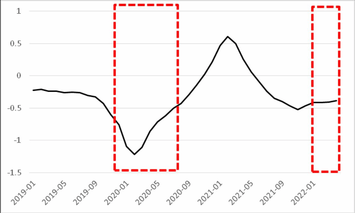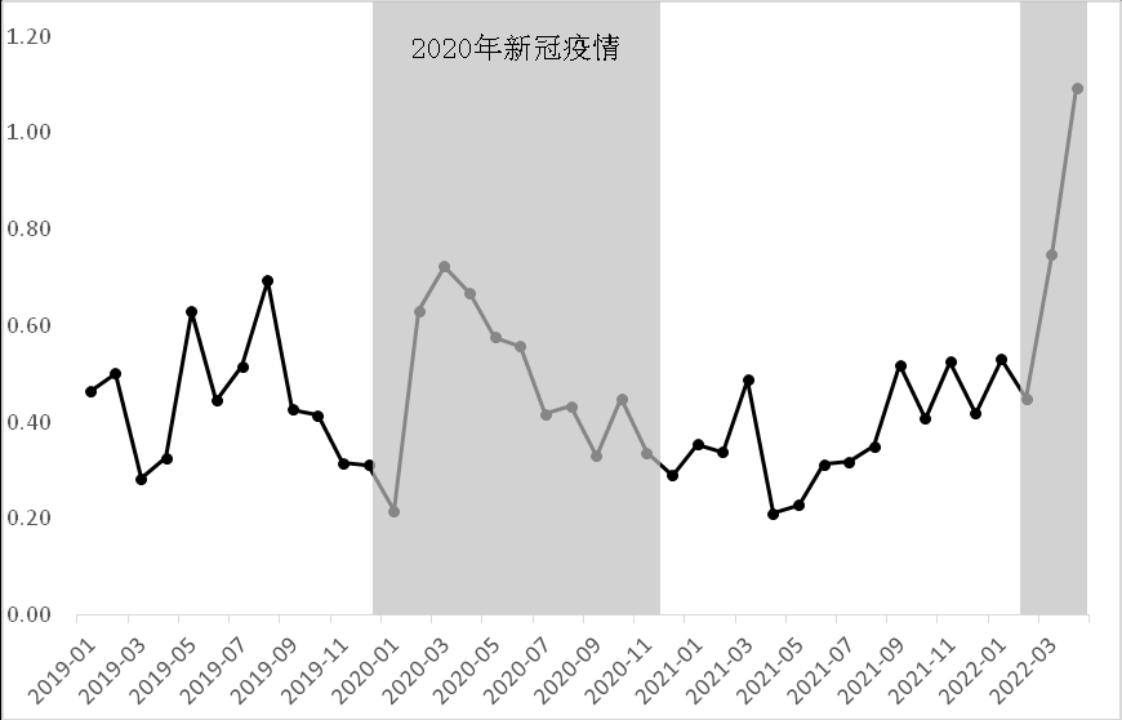 图1--2019年1月-2022年4月中国FSI绝对值