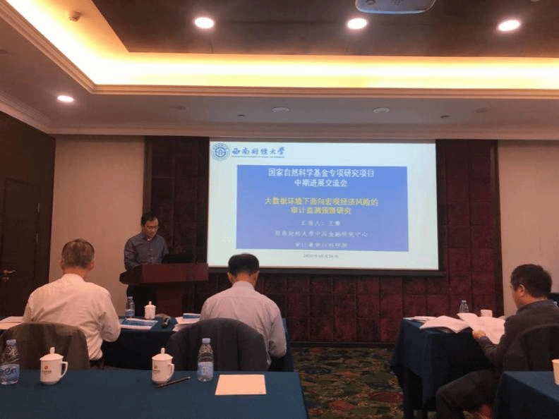 WANG Qing, director of the Chinese Finance Research Institute of SWUFE, on behalf of the research team, reported on the research progress of the project titled "Audit Monitoring and Early Warning of Macroeconomic Risks under the Big Data Environment". WANG emphasized research results and policy effects of the project from three parts: tracking and analysis system of the real estate, research on the operation of industry development, and the risk analysis framework of macro economy. The instructing experts highly evaluated project teams and hoped that they can further optimize the subject in consideration of the risk analysis framework, audit work model upgrading, etc.